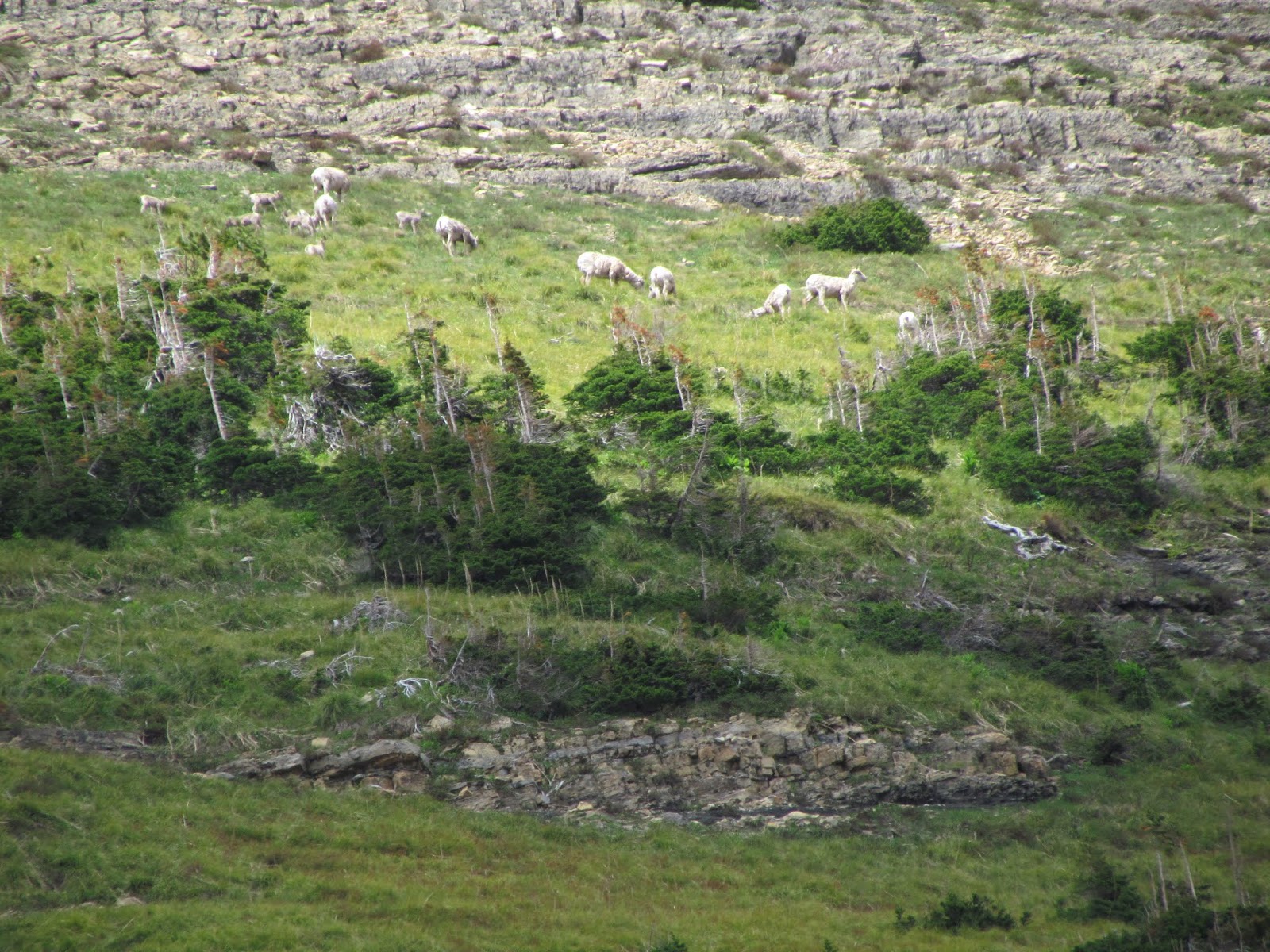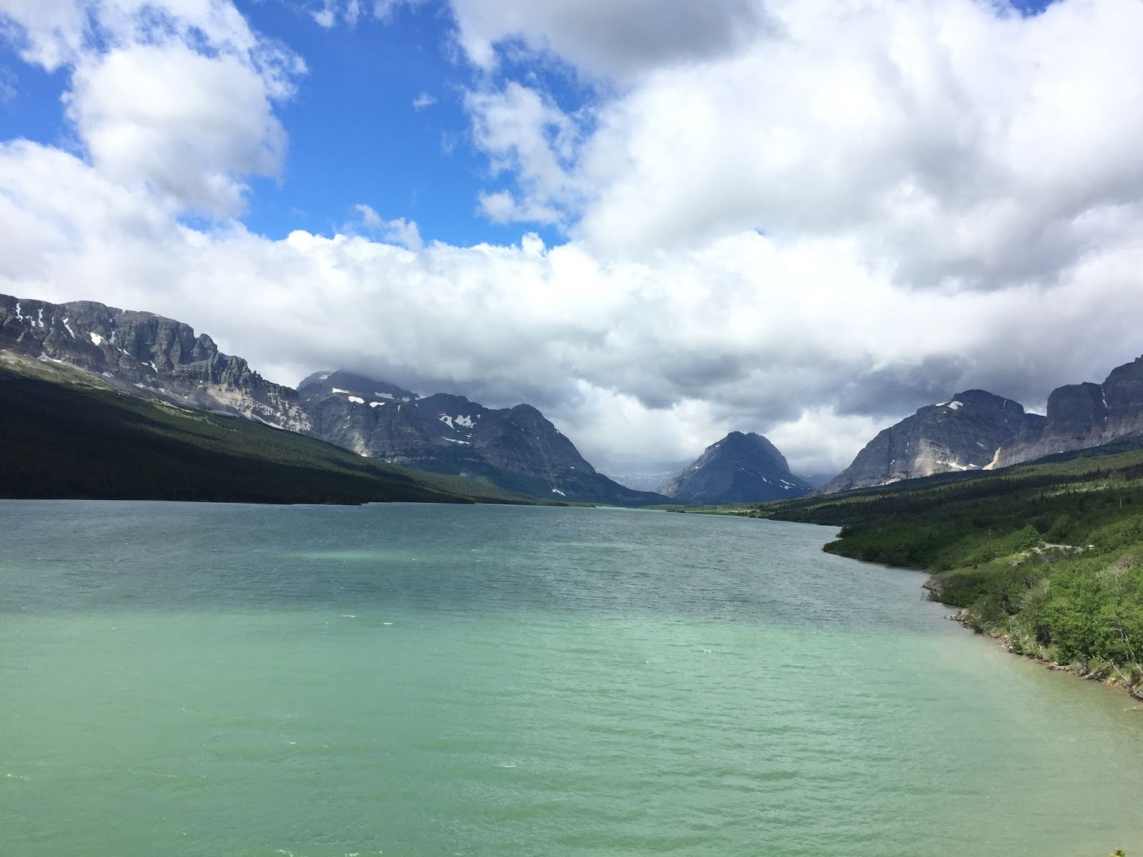 經過舍本湖Lake Sherburne,要不是看到水壩,真不敢相信這麼美麗的湖竟是一個蓄水庫。這個人工湖蓄積斯威夫特卡倫特溪Swiftcurrent Creek的水,於1914~1921年間建構,主要灌溉蒙大拿州中北部的農田。水壩曾造成氾濫,形成一些小湖、肥沃的河岸和濕地。聽說春天和秋天湖水上常見白天鵝,這個湖也是Many Glacier最大的湖。