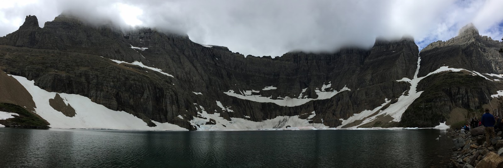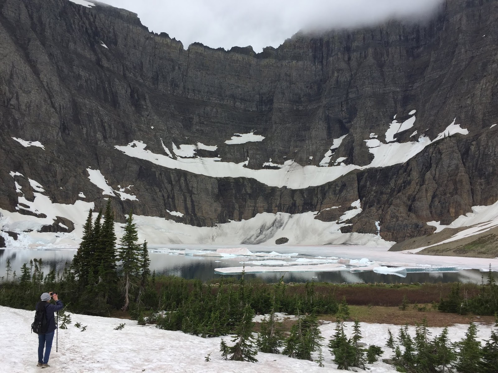 Iceberg Lake 這個高山湖海拔1857公尺,南邊Mount Wilbur 和西邊Iceberg Peak 環繞著湖,這些山都是比湖面高出900多公尺以上的高山,山的影子常籠罩著湖,湖水日照很少,因此冰和雪能夠積累在湖面和峭壁上。