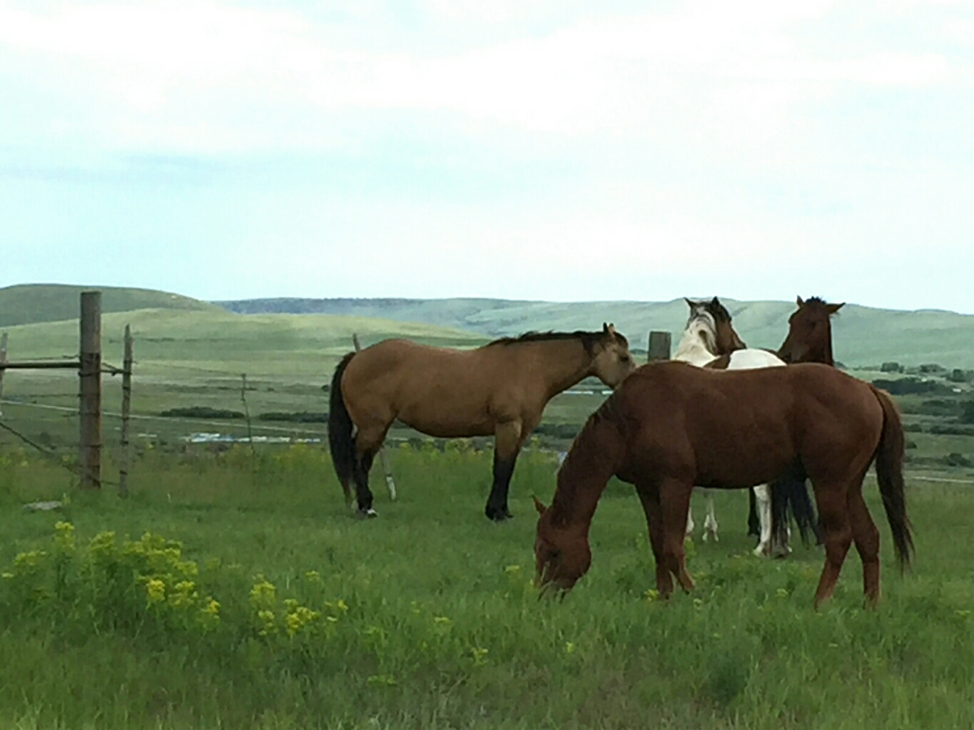 離開加拿大的沃特頓湖國家公園 (Waterton Lakes National Park) 後,往南進入美加邊境海關,沿著酋長山國際公路 (Chief mountain International Highway) 走,一進入美國蒙大拿就看見廣闊的草原上馬兒三五成群。