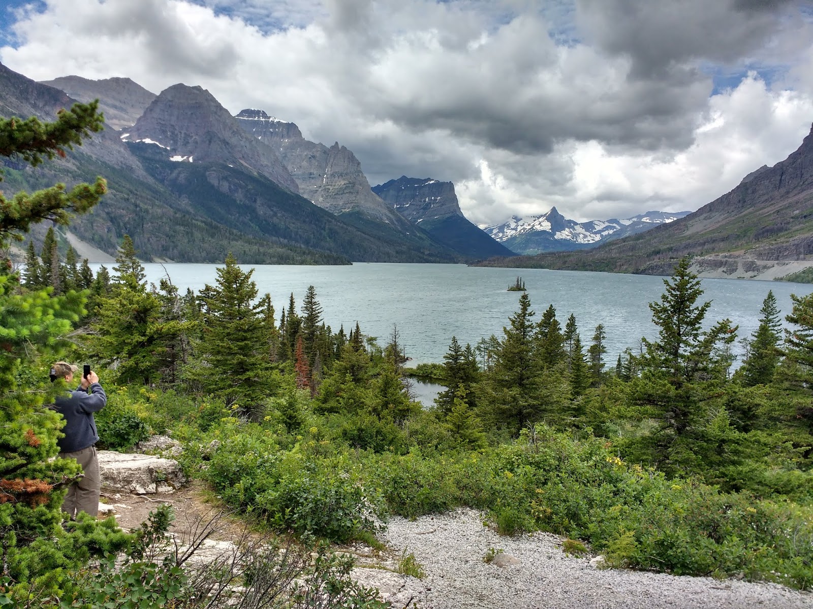 St. Mary Lake,是公園的第二大湖,長15.9公里。Rising Sun的湖邊夏季有遊船遊湖欣賞湖光山色。湖中的鵝島Goose Island 浮出水面只有4.3公尺,雖然是小小一點,但遠遠就能望見,如一葉扁舟飄浮水上,是攝影的人喜歡捕捉的鏡頭。