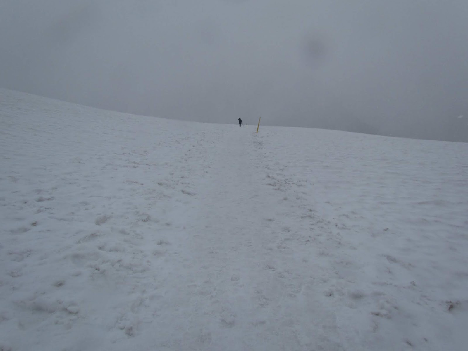 突然天氣又開始轉陰下起冰霰,一顆顆打在身上,趕緊拉緊外衣頭套。走到接近回程一半的地方開始下大雪,過Clements Mountain那段陡峭的雪徑時戰戰兢兢小心翼翼。剛過危險路段,有一對印度裔年輕人在我們後面直接以屁股坐雪的姿勢滑下雪坡,還對我們說棒極了!這段路很滑數不清又摔了幾次。