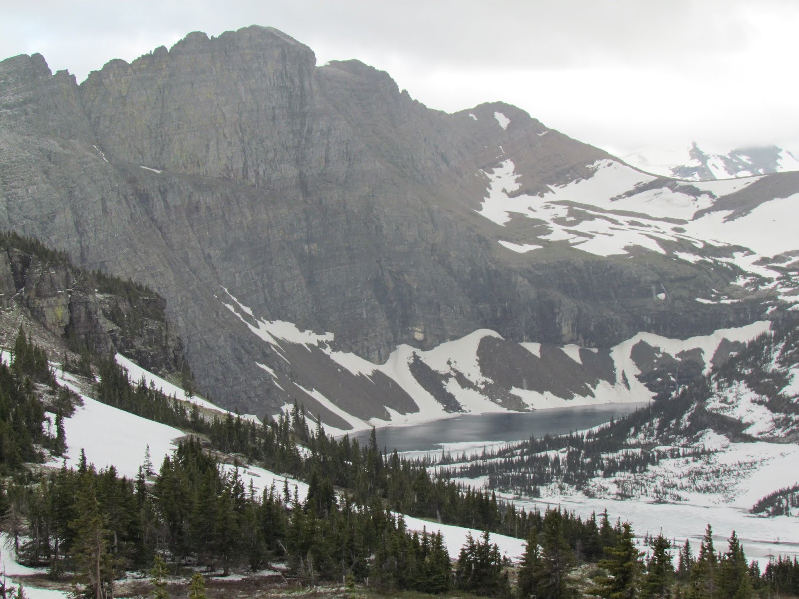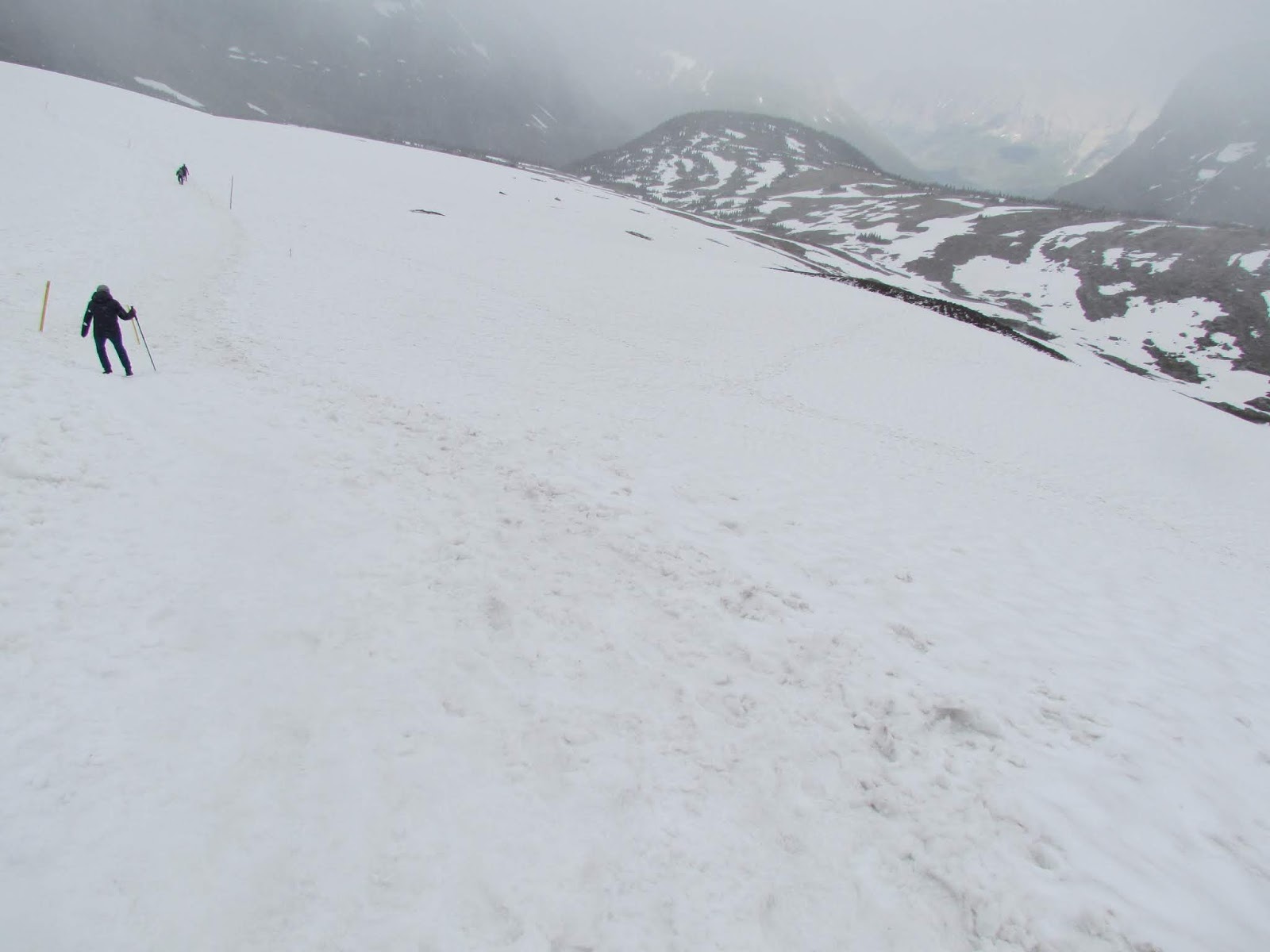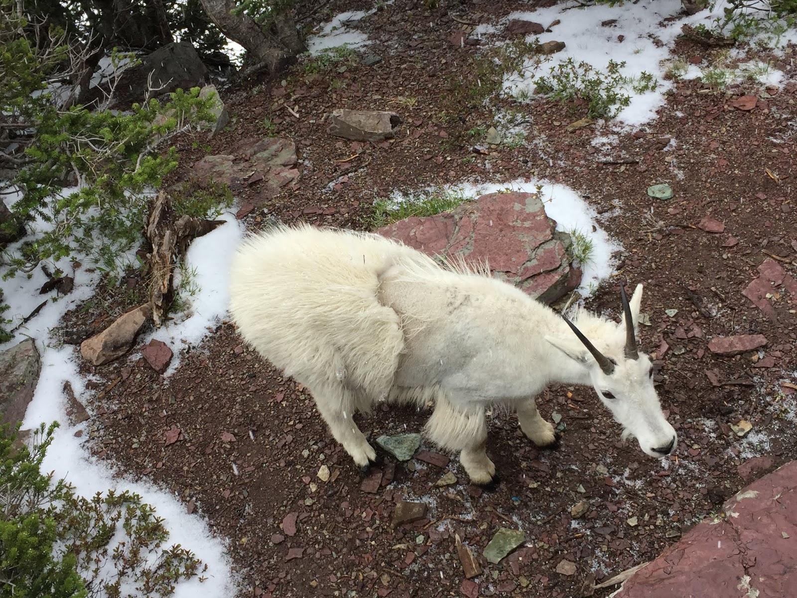 雪越下越大,落雪紛紛一片茫茫不見數公尺外的景色,開始擔心不防水的外套被雪弄濕。終於又踏上木板棧道了,因為沒戴手套手都凍僵了,身體也開始發抖,所幸再走一百公尺左右LoganPass 遊客中心就出現在眼前。回到旅館發現穿的四件衣服竟然濕了三件半,褲子襪子也全然濕透。淋到雪水的相機,再次開機時竟然報廢退休,真是一段難忘的旅程,特為之記。0702