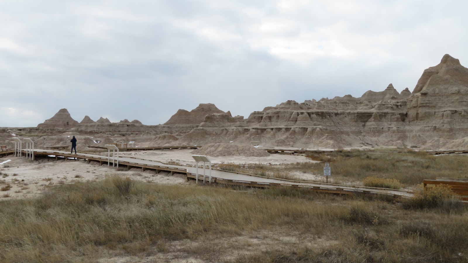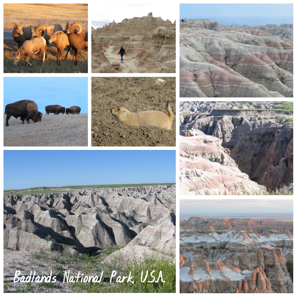 惡地國家公園(Badlands National Park)位於美國南達科他州 (South Dakota) 西南部,面積為244,000英畝(990平方公里),山丘和尖塔狀山峰沿著草原寧靜和諧融入大草原。其中惡地野生動物保護區面積為64,144英畝(259.58平方公里),是美國瀕危物種哺乳動物黑足鼬 (black-footed ferret) 的生長地。公園裡有土狼、禿鷹、響尾蛇、美洲野牛 、大角羊和草原犬鼠等野生動物。其中美洲野牛 (bison) 、大角羊 (bighorn) 和草原犬鼠 (prairie dog) 更是遊客們很有機會見到的三種野生動物。