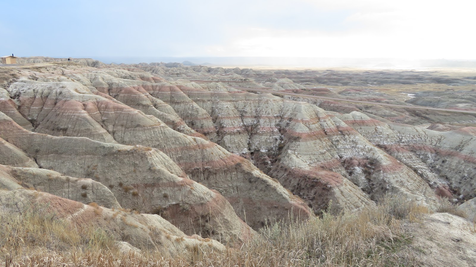 從 Notch Trail 下來,回到遊客中心稍作停留,從這裡出發開上Badlands Loop road這條景觀公路,由西向東而行。沿途有許多景點,時間充裕的話每個點都可稍作停留,體驗岩層地貌不同的展現。