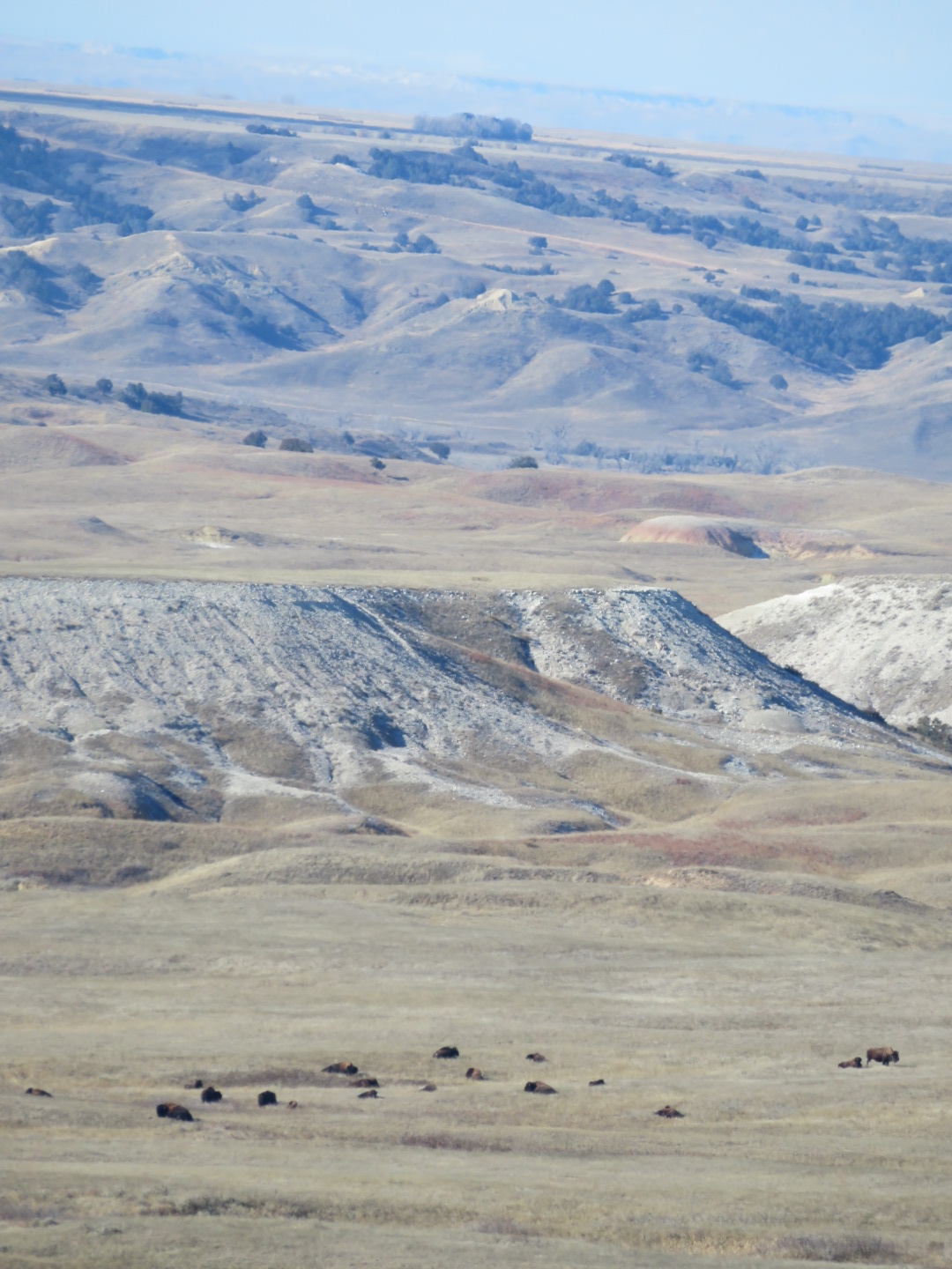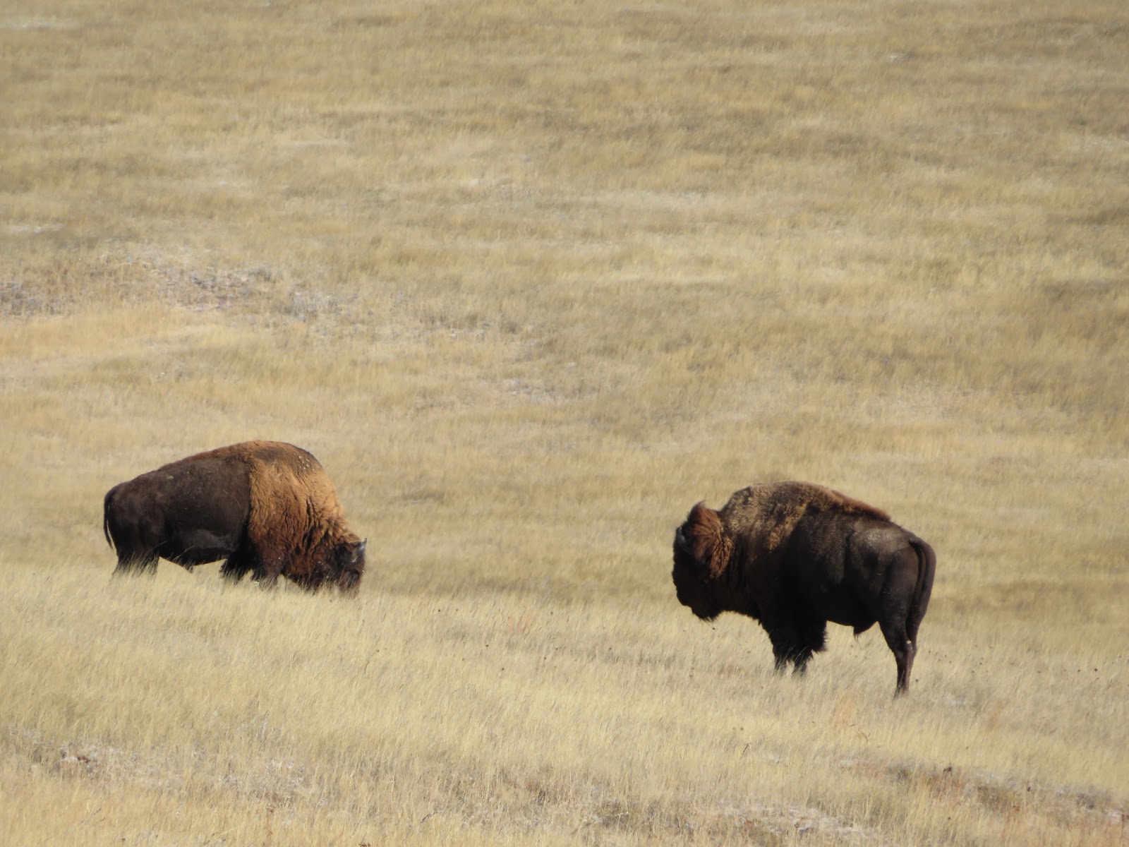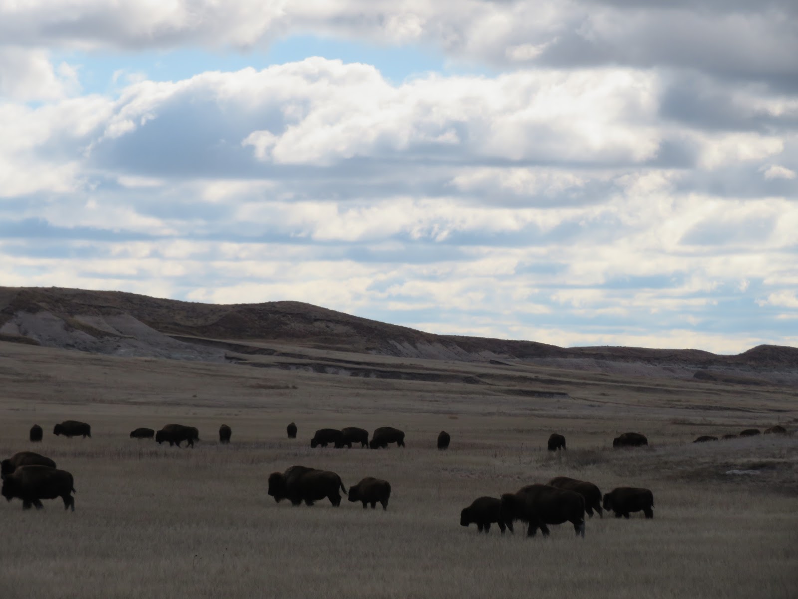 這次從拉皮德市 (Rapid City) 出發到惡地國家公園,按GPS指示開44 號州公路一路向東行駛,穿越美洲野牛溝國家草原 (Buffalo Gap National Grassland) ,沿路見到一大群野牛在大草原上漫步。