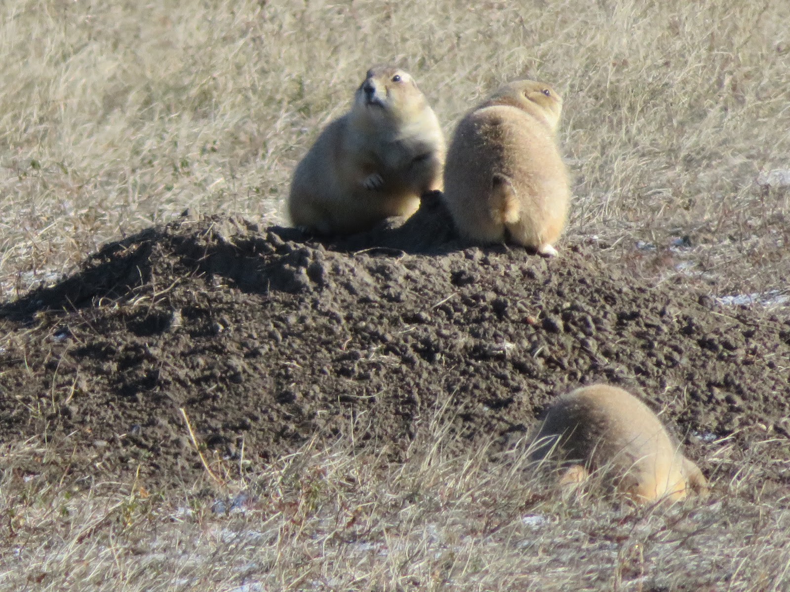 馬路的另一邊見到比Robert Prairie Dog Town更多的草原犬鼠竄來竄去,不知道為什麼有一隻一直汪汪叫,雖然也是汪汪的叫聲,但是音量卻比狗叫的聲音小很多。這種動物站立起來的時候像土撥鼠,趴下狂吠搖尾巴的時候感覺像一隻可愛的小狗,難怪當地人叫牠們為「草原犬」。