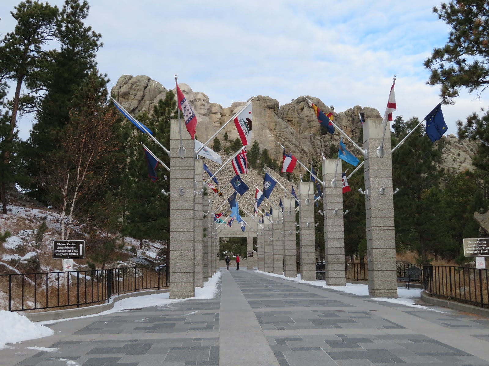 微雪的早晨拉什莫爾山Mount Rushmore遊人很少。 第三座門廊下也見到大理石鐫刻的捐錢建造者名錄。旁邊有升降機和樓梯可以下到遊客中心,在遊客中心瀏覽了一下,見到雕刻者的原始雕像模型。122005&072010&11132018