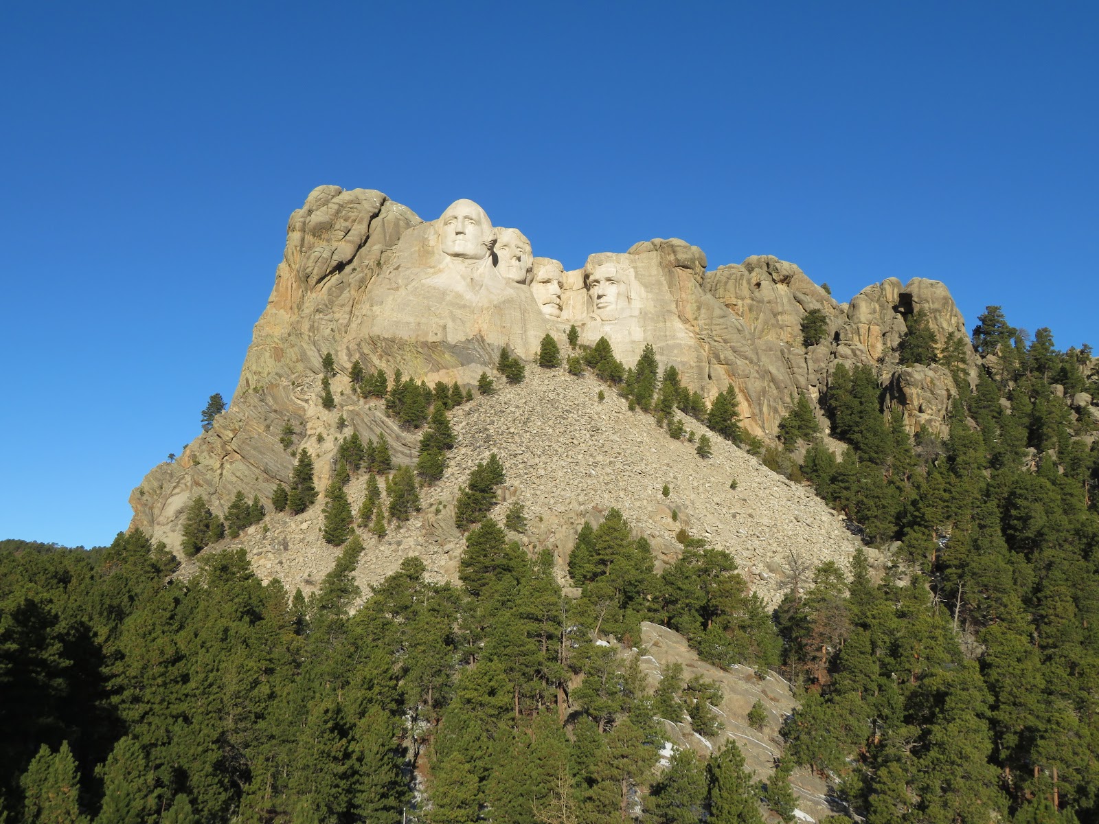 從魔鬼塔國家保護區(Devils Tower National Monument)直接開到拉什莫爾山(Mount Rushmore) 夜宿。前一晚做了功課知道雕像面對東南方向,因此要拍照和觀景早上是比較理想的時間。一早不到八點就進入公園,公園不需入門票,但是停車要付費10美元。穿過第一座門廊左邊是影音導覽,右邊是資訊中心和書店。