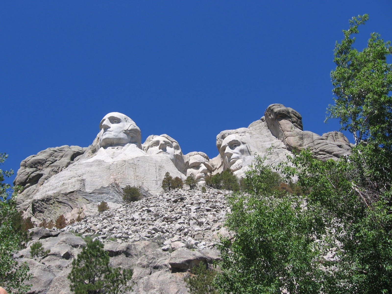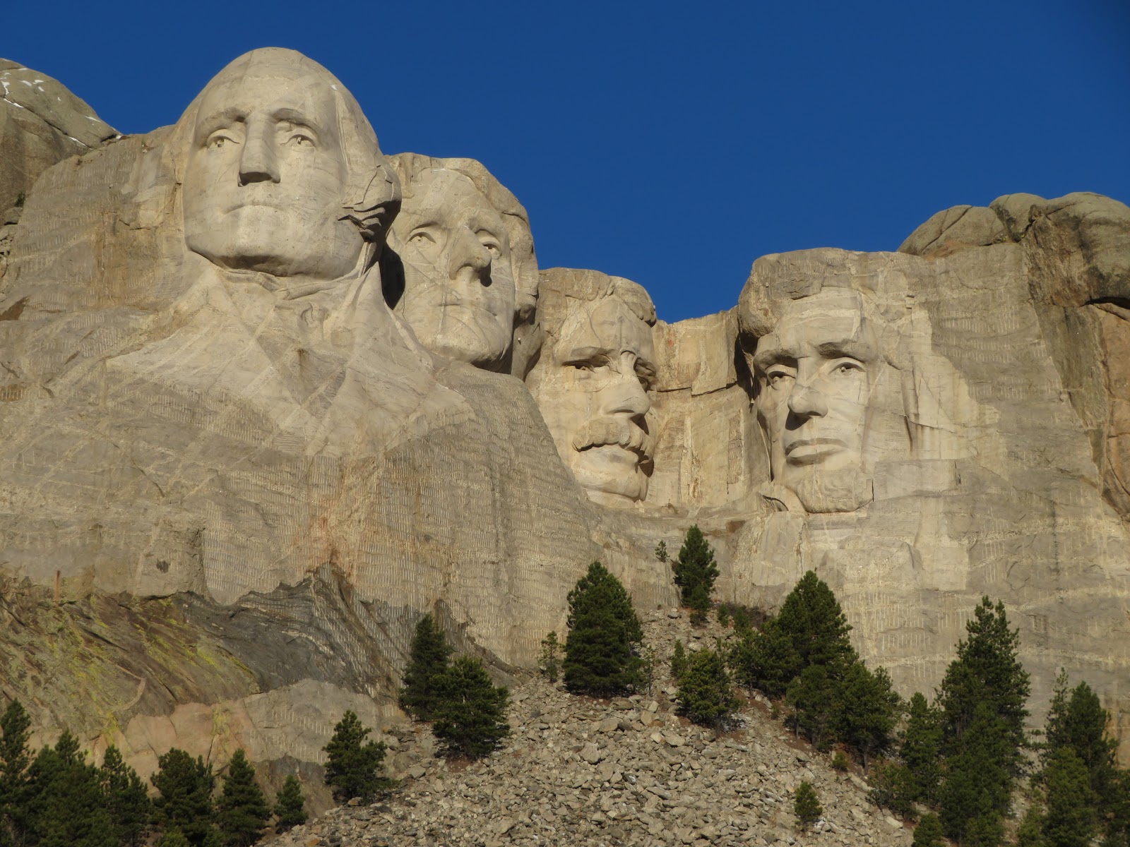 走過第三座門廊進入觀景台,近距離觀賞山坡上方花崗岩巨岩上的四位美國偉大的總統臉部雕像,觀景台上還有投幣望遠鏡。「哲人日已遠,典型在夙昔。」美國因他們的偉大而誕生而強盛!